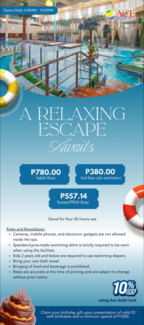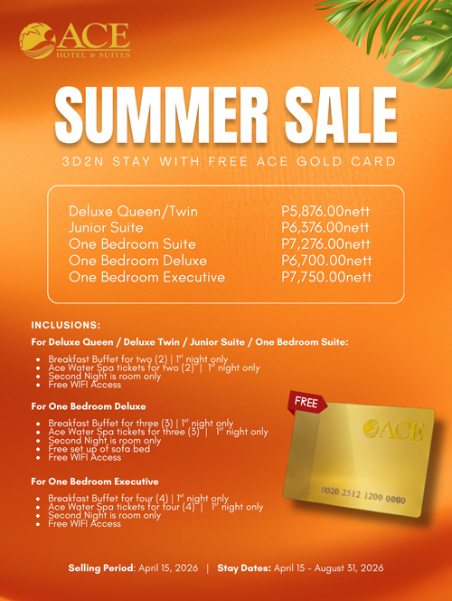 Deluxe accommodations and impressive leisure facilities are offered by the Ace Hotel & Suites. Each stands out with modern fittings, stylish and chic amenities, and a homelike ambiance highlighting Filipino hospitality. In addition, the hotel houses a fully operational water spa, popular for its hydrotherapy massage, with multiple food & beverage dining options that are equally satisfying.